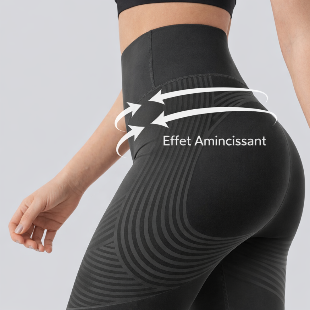 Ceinture haute conçue pour rester stable, avec un maintien doux au niveau du bas-ventre. Coupe galbante qui valorise la silhouette sans rigidité. Matière extensible et confortable, pensée pour éviter l’effet “trop fin” en mouvement et limiter les zones qui marquent.