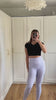 Ceinture haute conçue pour rester stable, avec un maintien doux au niveau du bas-ventre. Coupe galbante qui valorise la silhouette sans rigidité. Matière extensible et confortable, pensée pour éviter l’effet “trop fin” en mouvement et limiter les zones qui marquent.
